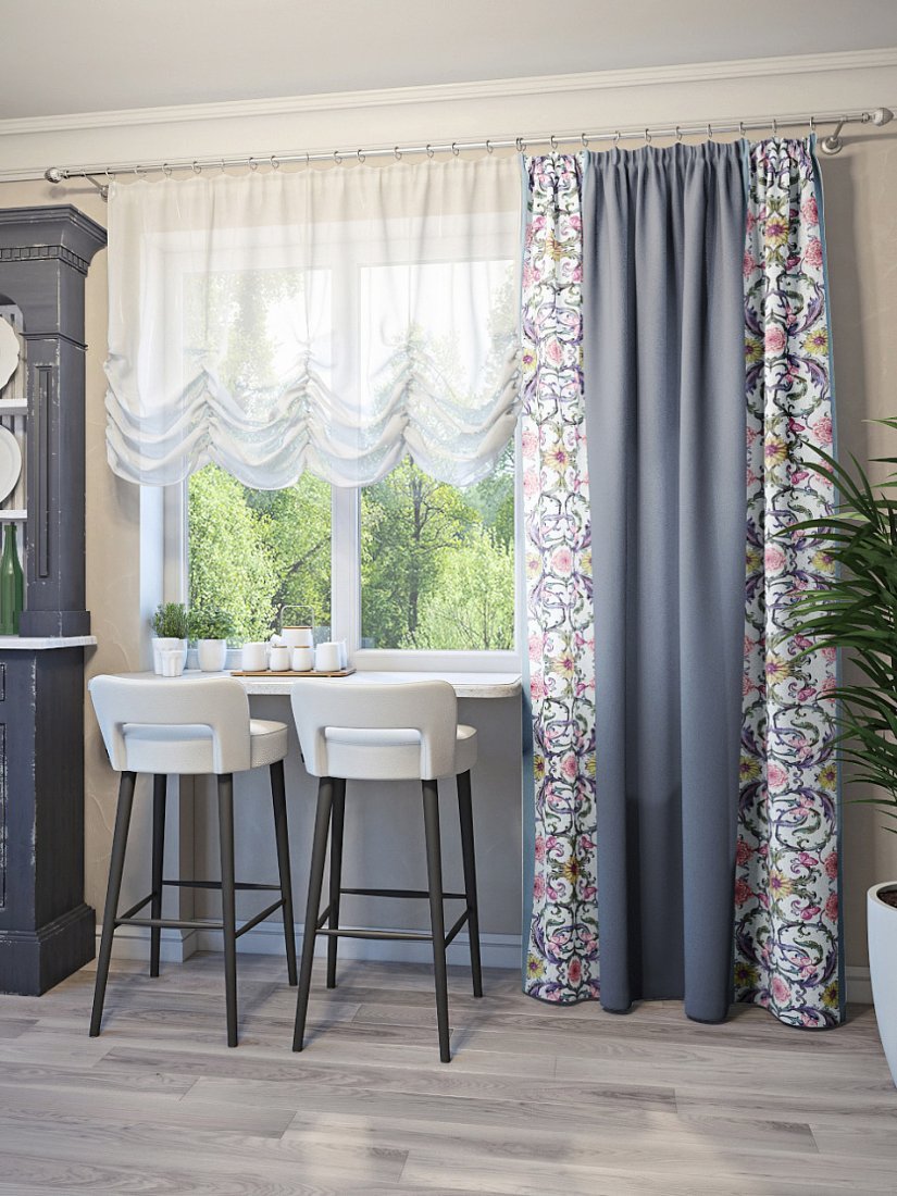 Чаще всего с портьерами используются легкие прозрачные и полупрозрачные гардины (занавески), создавая классический оконный ансамбль. Кроме того, с ними хорошо сочетаются римские и рулонные шторы.