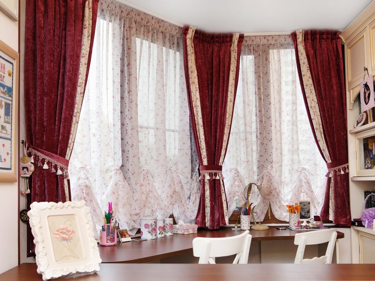 - На окне. Классическое применение занавесок на окнах для защиты от света, пыли и создания уюта в зале, гостиной, детской комнате, на балконе и в офисе.